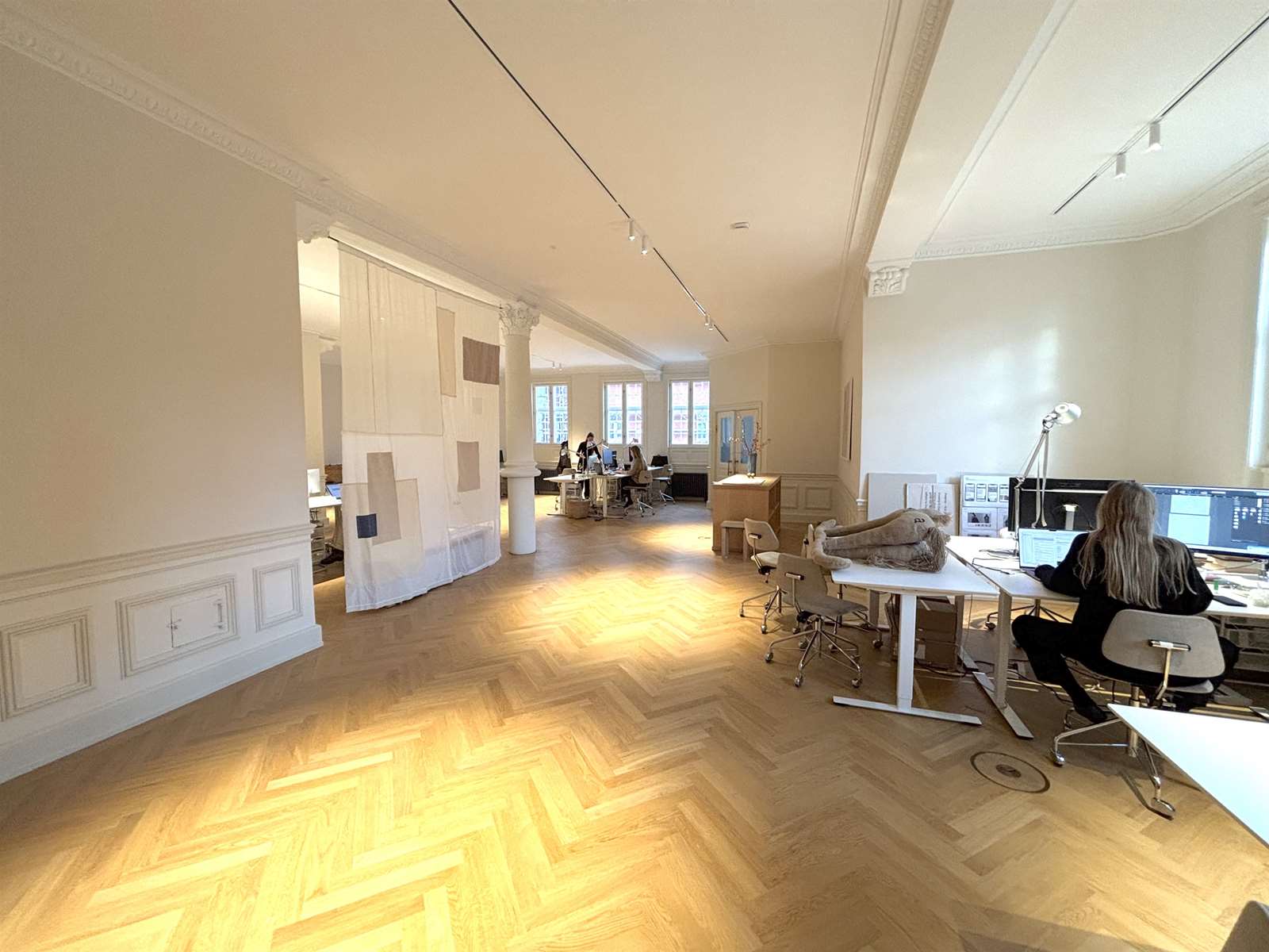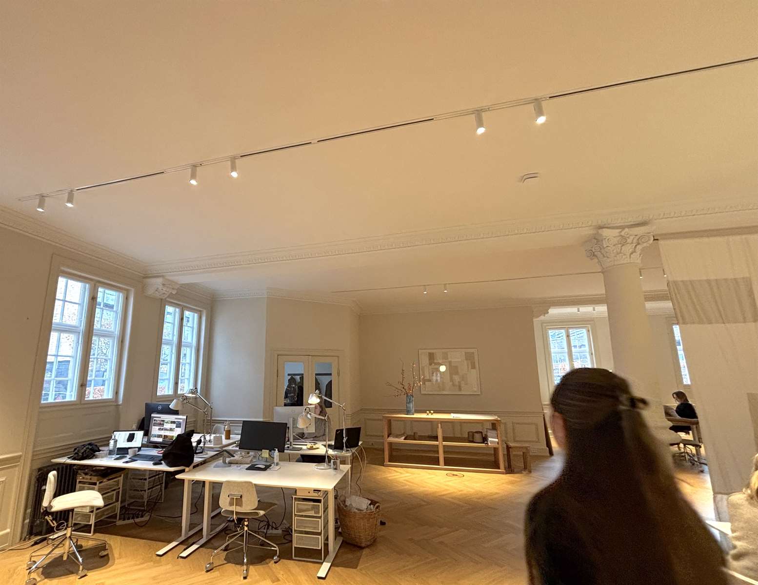Dette vidner om, hvordan et gennemtænkt akustisk design kan skabe en følelse af ro og forbedret koncentration, selv i dynamiske kontormiljøer. Et særligt eksempel er badeværelserne, hvor Akustiknord også har anvendt akustikpuds. Dette sikrer, at selv i rum hvor lyd typisk forstærkes, bevares den rolige og eksklusive atmosfære, der præger resten af bygningen. Akustiknords løsning har sikret, at den gode akustik gælder for hele huset – fra de store åbne kontorarealer til de mindre rum og de æstetisk udførte badeværelser – hvilket sikrer en ensartet og behagelig lydoplevelse overalt.