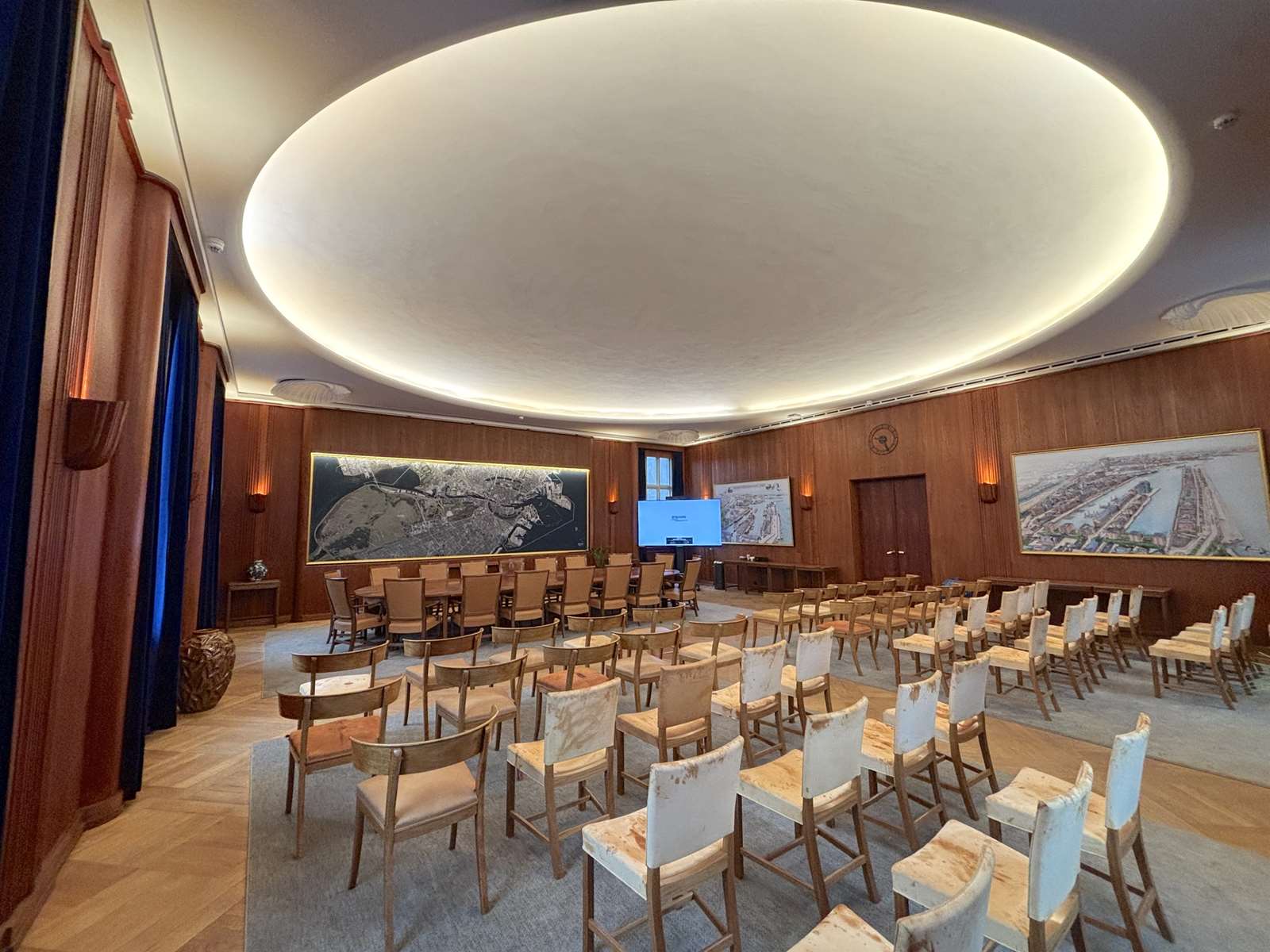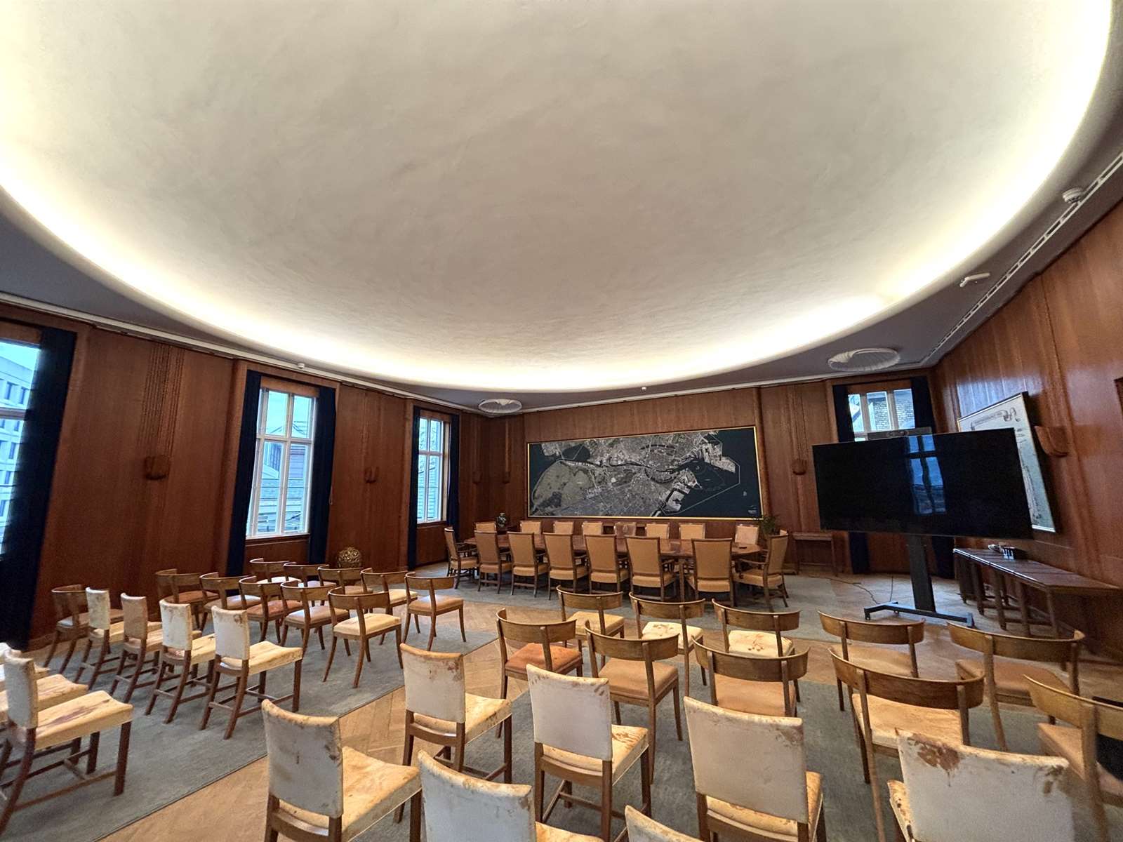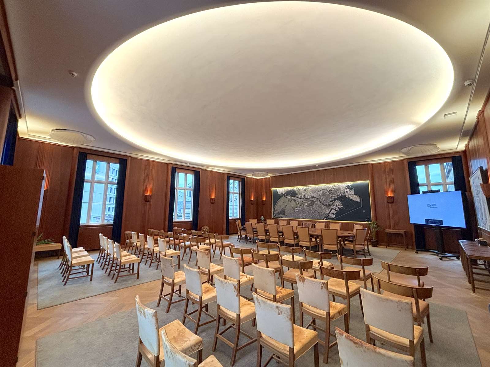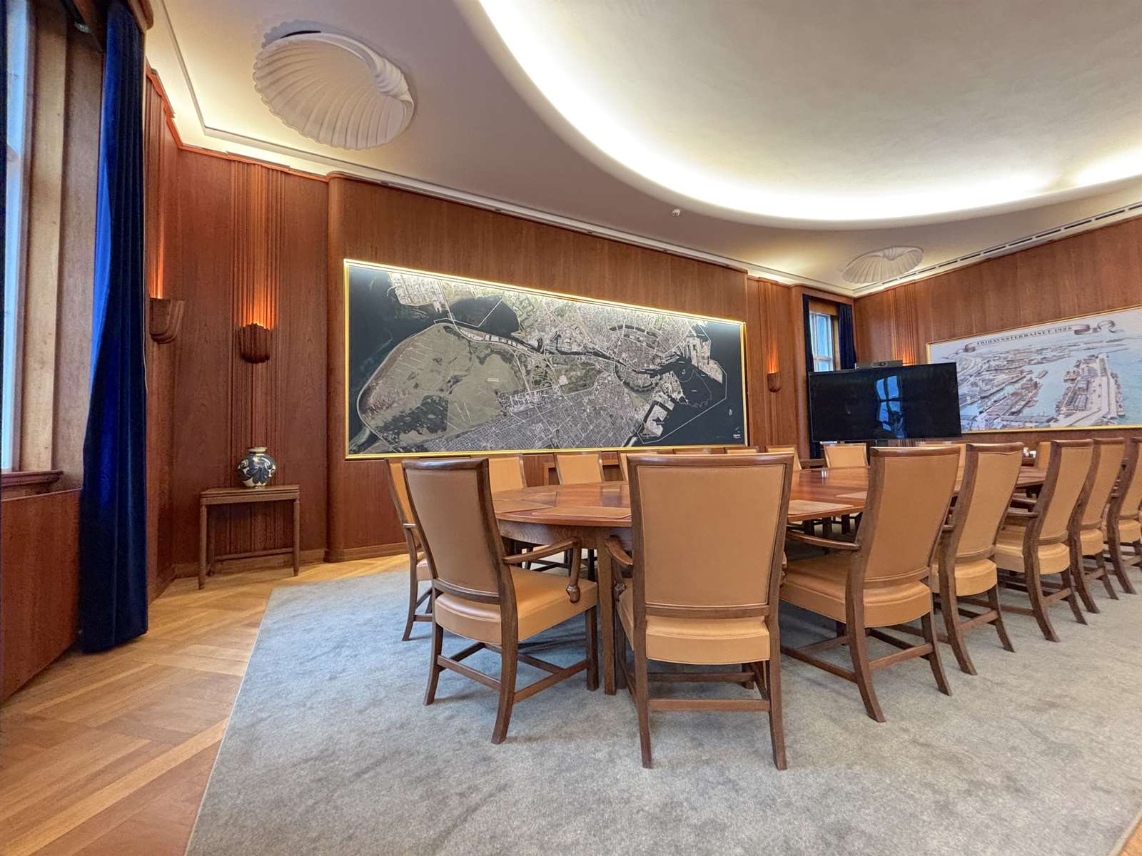 "Salen benyttes ikke kun af vores bestyrelse, men også til dagligt af vores kollegaer til møder og events, alle er imponerede over hvor god akustikken er blevet efter renoveringen, her spiller loftet en stor rolle, sammen med akustikbilleder på væggene, og nye trykke gulvtæpper på gulvet," bekræfter By & Havn.