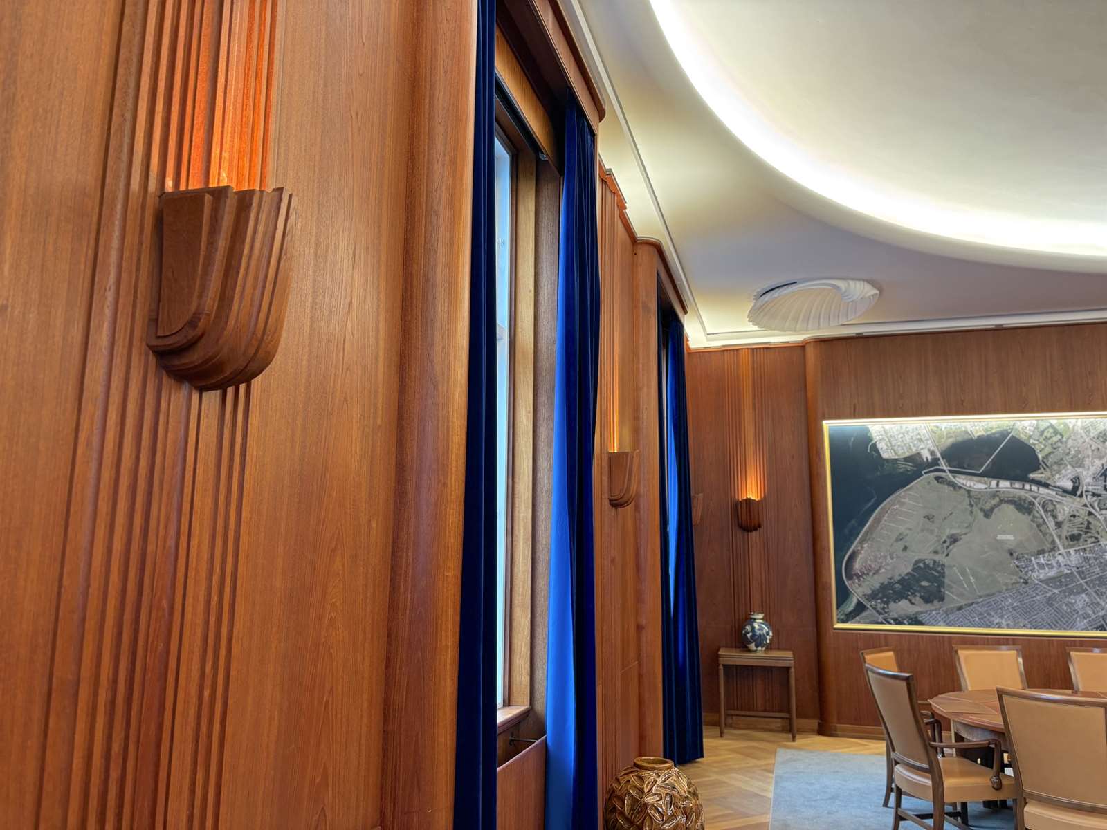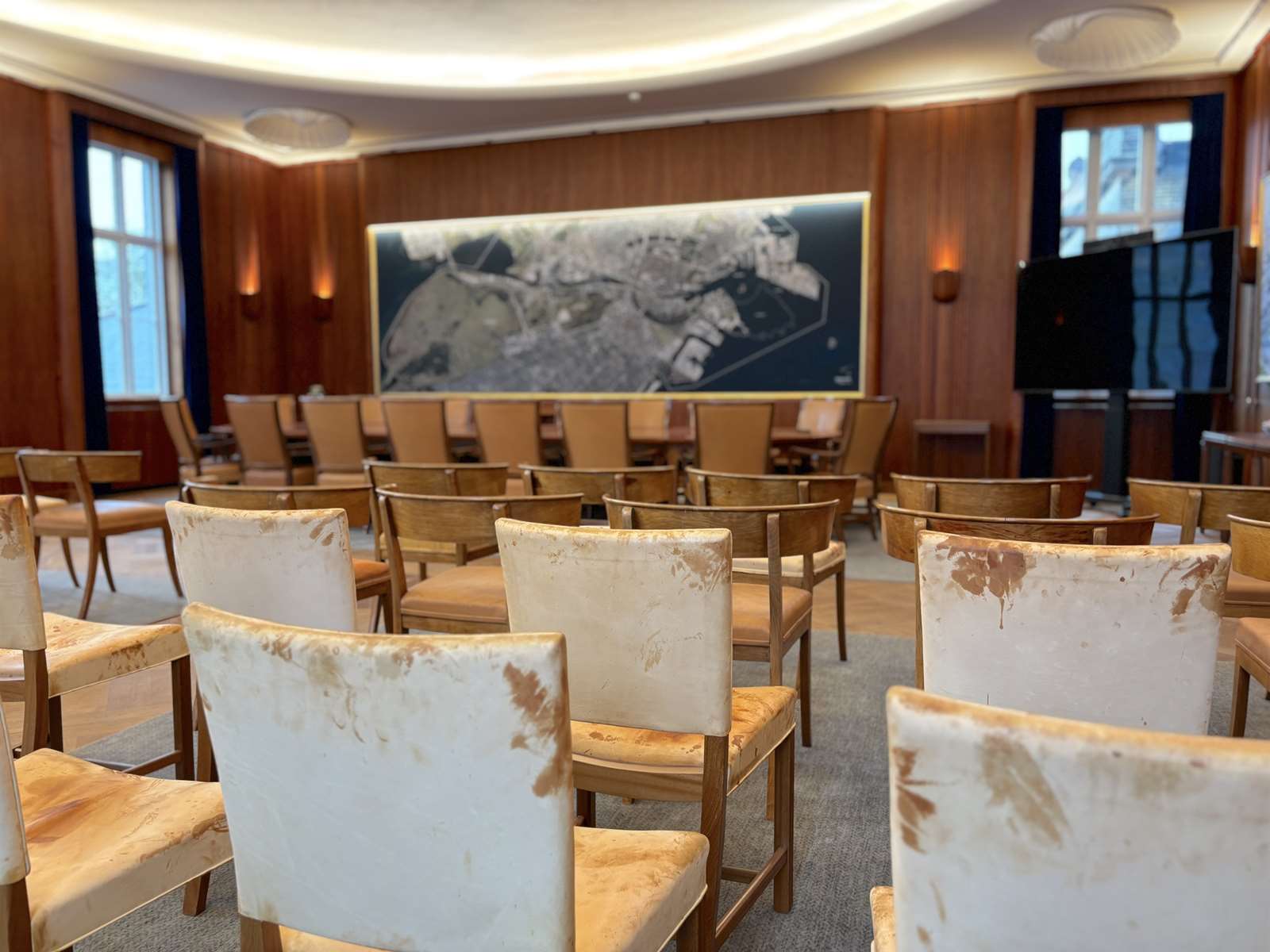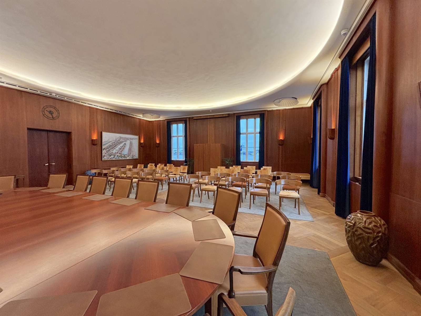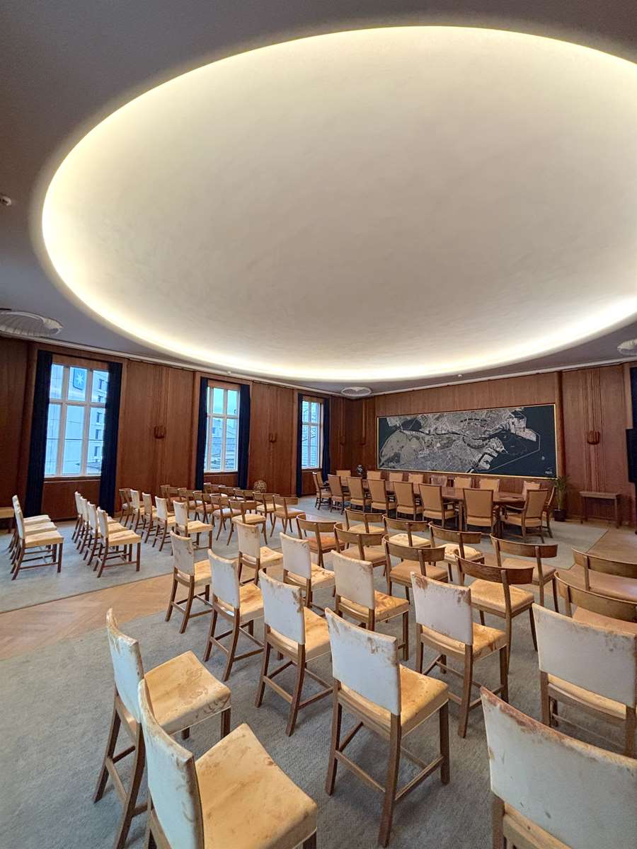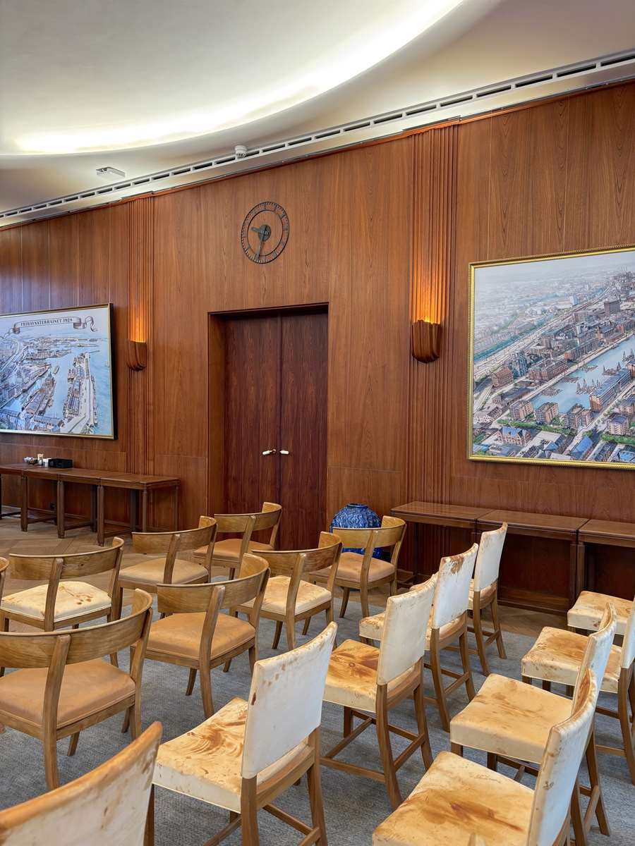 "Salen benyttes ikke kun af vores bestyrelse, men også til dagligt af vores kollegaer til møder og events, alle er imponerede over hvor god akustikken er blevet efter renoveringen, her spiller loftet en stor rolle, sammen med akustikbilleder på væggene, og nye trykke gulvtæpper på gulvet," bekræfter By & Havn.