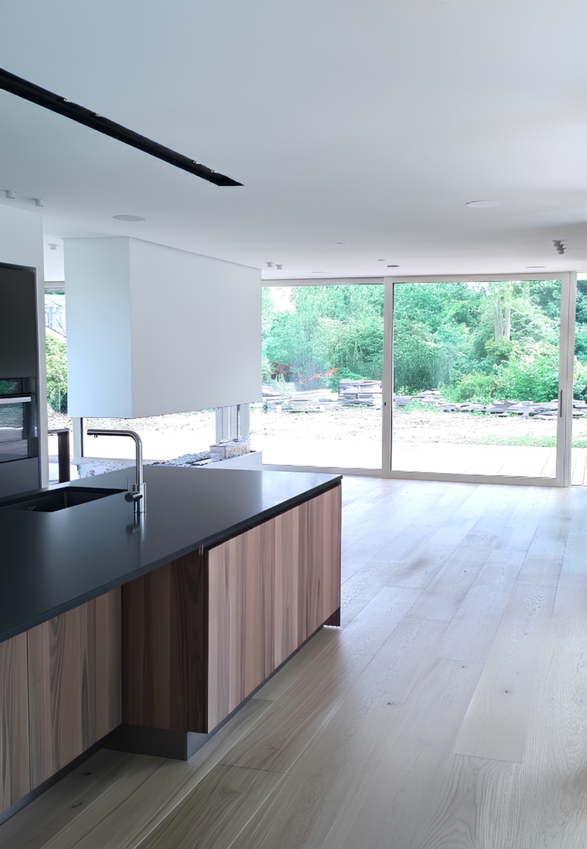 Moderne byggestil med store, åbne rum er fantastisk for lysindfald og følelsen af rummelighed, men kombineret med en minimalistisk indretning med få tekstiler og bløde møbler, kan det hurtigt blive en akustisk udfordring – især for familier med børn. Leg, latter, og hverdagens lyde kan nemt forvandles til et kakofonisk lydbillede, der stresser både børn og voksne. Her bliver akustikregulering ikke blot et spørgsmål om komfort, men en nødvendighed for at skabe et behageligt og harmonisk hjem. I Villa Duer valgte man at fokusere på de rum, hvor støjen typisk er størst: køkken-alrum, stue og fællesrum.